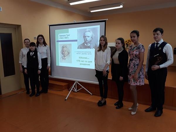 В конце февраля 2019 года в МБУ ДО "Стрелецкая ДШИ» состоялись две лекции-концерта, посвящённые жизни и творчеству великого норвежского композитора Э. Грига, в честь 175-летнего юбилея.