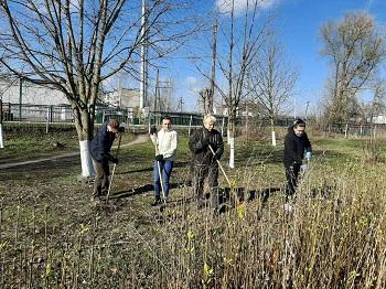 В субботнике приняли участие работники всей школы. Была проведена огромная работа по уборке территории. В ходе уборки от мусора были очищены газоны, убран сухостой, произведена обрезка деревьев, кустарников.
